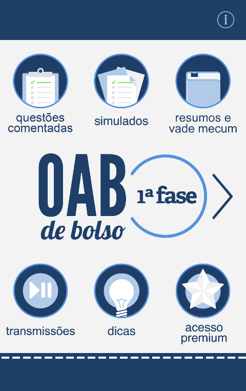O mais legal é que o aplicativo acompanha a vida do estudante, na medida em que apresenta uma 1ª e 2ª fase de acesso, ou seja, acompanha o seu sucesso na prova da OAB.